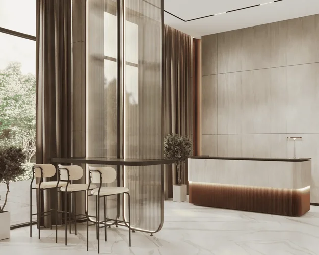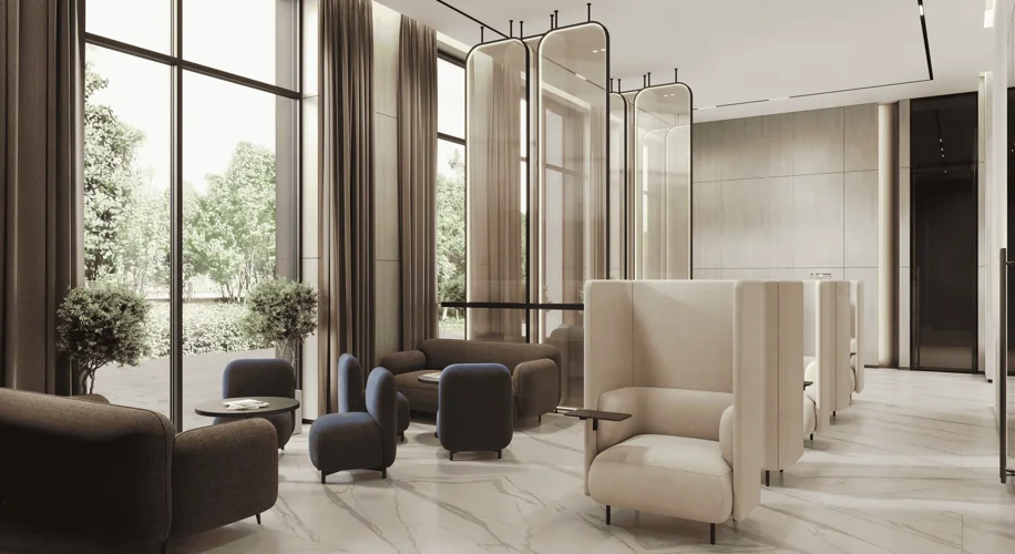 Жилой комплекс состоит из 2 башен от 21 до 29 этажей, включающих всего 498 квартир, для того чтобы вы могли насладиться тишиной и спокойствием после насыщенного дня.