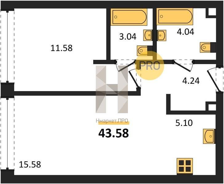 Площадь от 20.3 м2