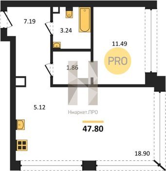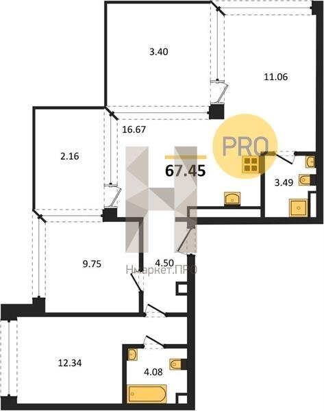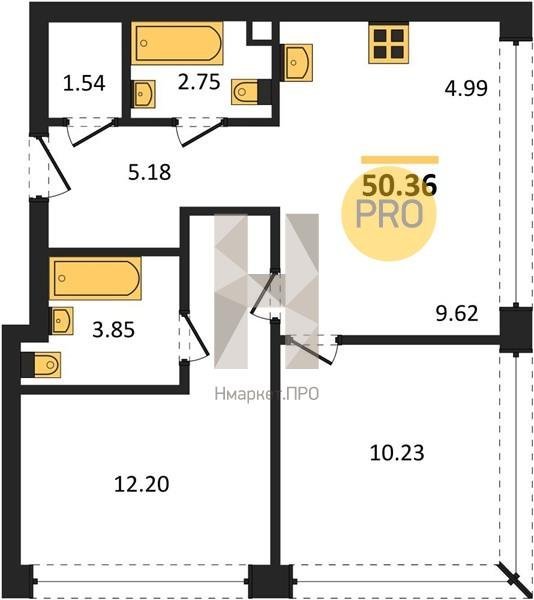 Площадь от 49.5 м2