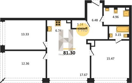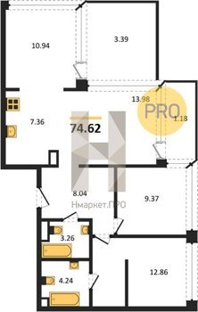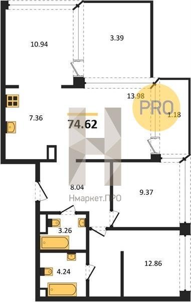 Площадь от 74.6 м2