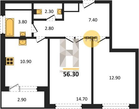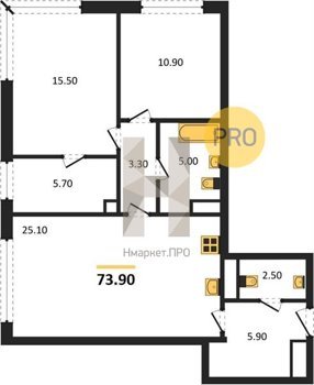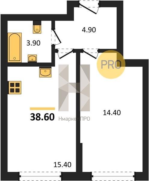Площадь от 34.8 м2