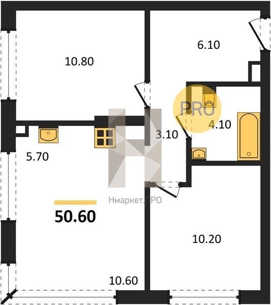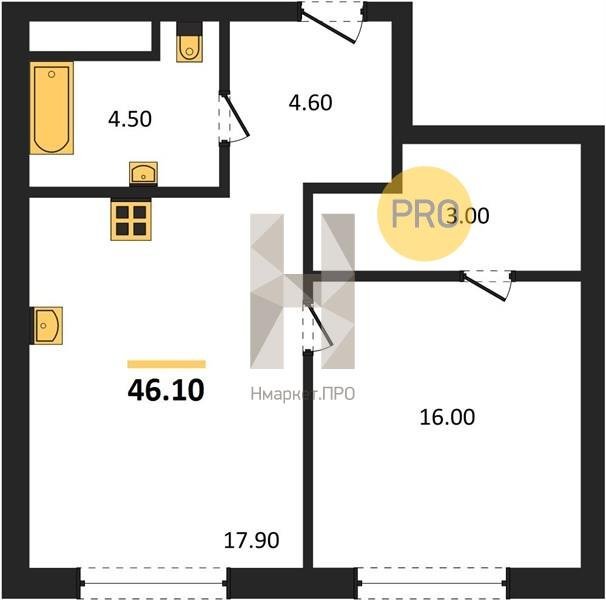 Площадь от 49.8 м2